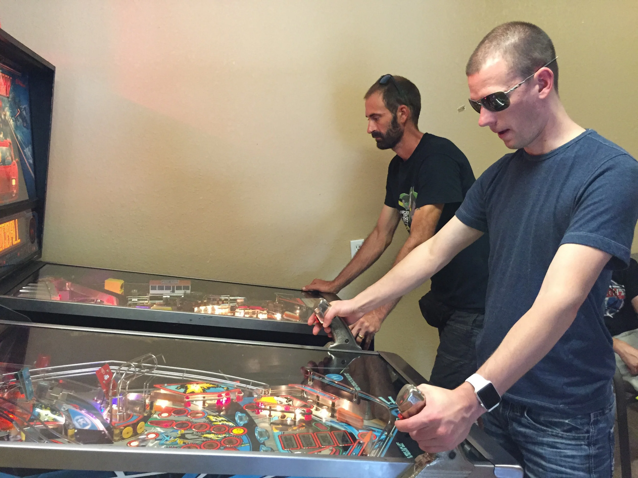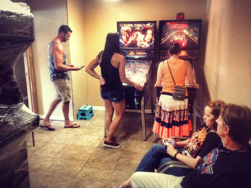 For pins. we played Johnny Mnemonic, No Fear, Big Guns, Junk Yard, Demolition Man and The Getaway II. For arcades, Centipede, Galaga and Pacman Jr. What a fun collection!
